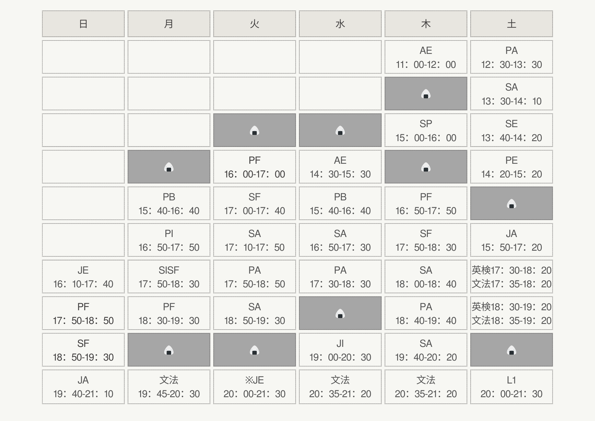NEW! ↑土曜は小4~6年クラスを開講します。小1~3年は月火木日に開講します。