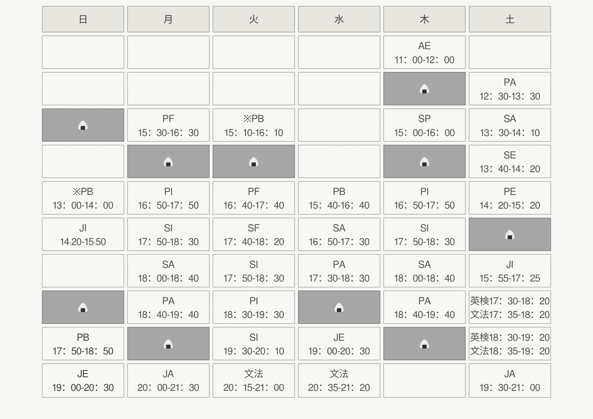 ※のクラスは仮のものです。レッスンのお時間はご相談ください。